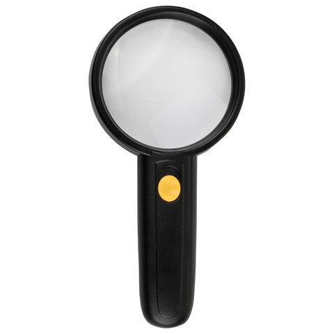 Лупа просмотровая BRAUBERG, С ПОДСВЕТКОЙ, диаметр 75 мм, увеличение 3, корпус черный, 454130