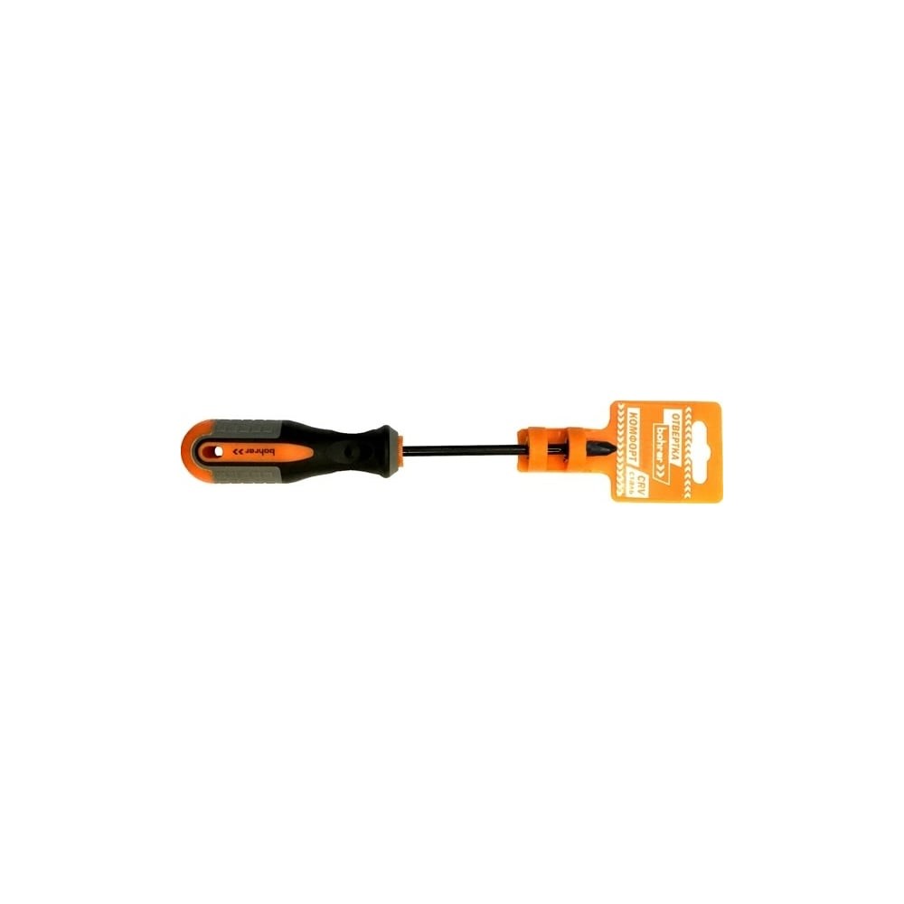 Отвёртка Bohrer Комфорт PZ1x100 мм, магнитная, трехкомпонентная рукоятка 42331100 представляет собой качественный ручной инструмент, предназначенный для работ с крепежом. Может использоваться в бытовых и профессиональных целях. Отвертка изготовлена из высококачественной хромованадиевой стали, что обеспечивает прочность, стойкость к износу и долговечность. Эргономичная трехкомпонентная рукоятка комфортна при работе и не скользит в руках оператора.
