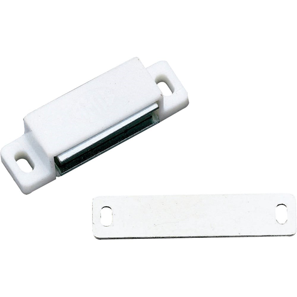 Магнитная защелка Amig белая 10 BL 723 это фурнитура для корпусной мебели, фиксирующая дверцы в закрытом положении. Изделие просто в эксплуатации и легко монтируется с помощью саморезов, входящих в комплект.