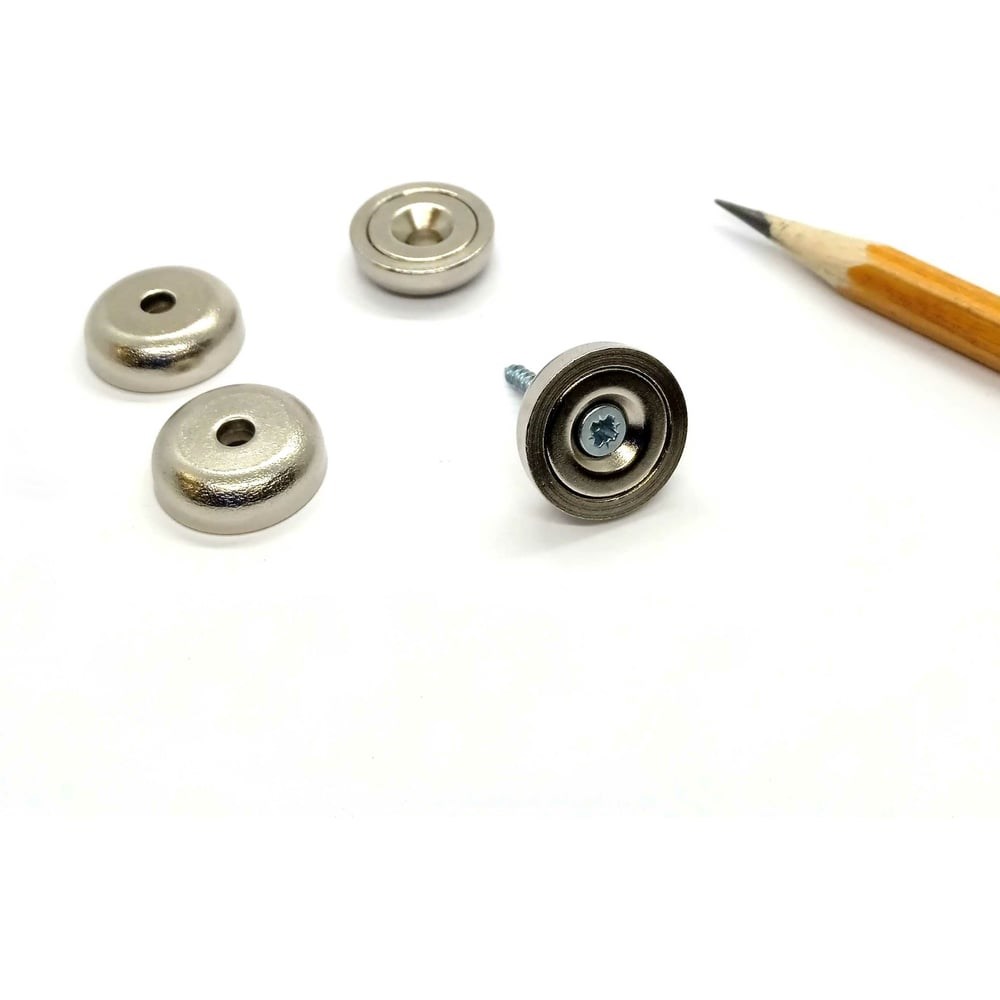 Магнитный крепеж А16 с зенковкой (магнитный фиксатор, магнитный держатель) имеет усилие отрыва* 5,5 кг. Магнитный крепеж состоит из металлического корпуса (сталь) и вклеенного в него кольцевого магнита. Центральное отверстие магнитного кольца имеет зенковку под винт d3мм. Магнитный крепеж имеет антикоррозийное покрытие из никеля, что дает возможность эксплуатировать его не только в помещениях при нормальной влажности 50%, но и на улице при влажности воздуха более 90%. Диапазон рабочих температур от -60 до +80 градусов Цельсия. Вес магнитного крепежа 7 грамм. Для магнитного крепежа типа А можно использовать саморезы, шурупы и винты. Так как крепеж имеет отверстие с зенковкой, то головка самореза (шурупа или винта) хорошо скрывается в отверстии потай, тем самым обеспечивая полный контакт поверхности магнита с металлической поверхностью. Обратите внимание! *Указано максимальное значение на отрыв в идеальных условиях (испытательный стенд с ровным стальным листом, толщиной 15 мм). Усилие магнитного крепления на отрыв/сдвиг напрямую зависит от поверхности, к которой вы его примагничиваете. Если металл тоньше 15 мм, неровный, с лакокрасочным покрытием, ржавчиной, выбоинами или кратерами, сила магнита будет значительно меньше. **Усилие на отрыв**(когда вы подвешиваете крепеж к потолку и груз свисает вниз) всегда будет в несколько раз больше, чем усилие на скольжение/сдвиг (если примагничиваете крепеж, к примеру, к дверце холодильника).