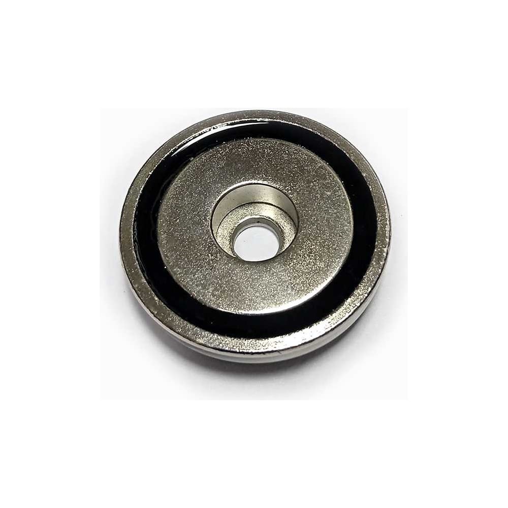 Магнитное крепление с отверстием Проф-магнит В48 имеет усилие отрыва 63 кг*. Магнитный крепеж состоит из металлического корпуса (сталь), вклеенного в него неодимового (NdFeB) кольцевого магнита. Кольцевой магнит с отверстием, имеет центральное отверстие под винт M8 (диаметр отверстия 8.5 мм). Магнитный крепеж имеет антикоррозийное покрытие из никеля, что дает возможность эксплуатировать его не только в помещениях при нормальной влажности 50%, но и на улице при влажности воздуха более 90%. Диапазон рабочих температур от -60 до +80 градусов Цельсия. Вес магнитного крепежа В48 равен 110 г.Для магнитного крепежа типа В можно использовать саморезы, шурупы и винты, а также болты и шестигранники. Так как крепеж имеет сквозное отверстие, то головка шурупа или винта хорошо "утапливается" в отверстие, тем самым обеспечивая полный контакт поверхности магнита с металлической поверхностью.Обратите внимание!*Указано максимальное значение на отрыв в идеальных условиях (испытательный стенд с ровным стальным листом, толщиной 15 мм). Усилие магнитного крепления на отрыв/сдвиг напрямую зависит от поверхности, к которой вы его примагничиваете. Если металл тоньше 15 мм, неровный, с лакокрасочным покрытием, ржавчиной, выбоинами или кратерами, сила магнита будет значительно меньше.**Усилие на отрыв**(когда вы подвешиваете крепеж к потолку и груз свисает вниз) всегда будет в несколько раз больше, чем усилие на скольжение/сдвиг (если примагничиваете крепеж, к примеру, к дверце холодильника).