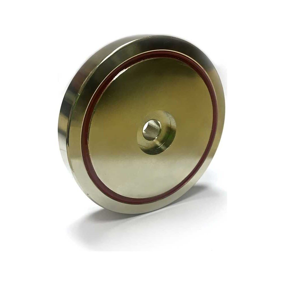 Магнитное крепление с отверстием Проф-магнит В75, имеет усилие отрыва 155 кг*. Магнитный крепеж состоит из металлического корпуса (сталь), вклеенного в него неодимового (NdFeB) кольцевого магнита. Кольцевой магнит с отверстием, имеет центральное отверстие под винт M10 (диаметр отверстия 10,5 мм). Магнитный крепеж имеет антикоррозийное покрытие из никеля, что дает возможность эксплуатировать его не только в помещениях при нормальной влажности 50%, но и на улице при влажности воздуха более 90%. Диапазон рабочих температур от -60 до +80 градусов Цельсия. Вес магнитного крепежа В75 равен 480 г.Для магнитного крепежа типа В можно использовать саморезы, шурупы и винты, а также болты и шестигранники. Так как крепеж имеет сквозное отверстие, то головка шурупа или винта хорошо "утапливается" в отверстие, тем самым обеспечивая полный контакт поверхности магнита с металлической поверхностью.Обратите внимание!*Указано максимальное значение на отрыв в идеальных условиях (испытательный стенд с ровным стальным листом, толщиной 15 мм). Усилие магнитного крепления на отрыв/сдвиг напрямую зависит от поверхности, к которой вы его примагничиваете. Если металл тоньше 15 мм, неровный, с лакокрасочным покрытием, ржавчиной, выбоинами или кратерами, сила магнита будет значительно меньше.**Усилие на отрыв**(когда вы подвешиваете крепеж к потолку и груз свисает вниз) всегда будет в несколько раз больше, чем усилие на скольжение/сдвиг (если примагничиваете крепеж, к примеру, к дверце холодильника).