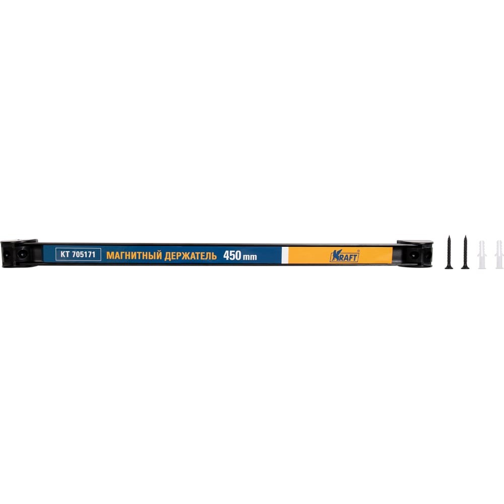 Магнитный держатель KRAFT 450 мм KT 705171 используется в мастерских для удобного и компактного хранения ручных инструментов. Изделие имеет эргономичный и легкий в монтаже корпус.