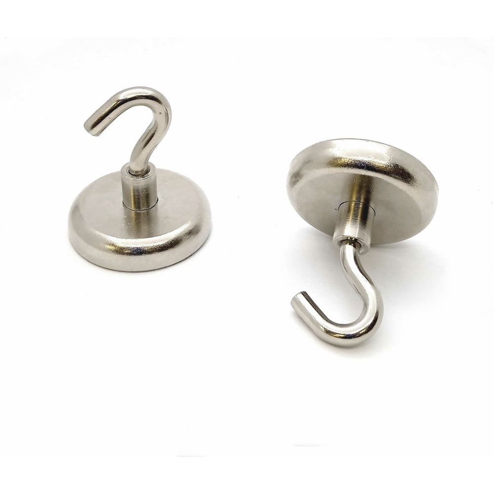 Магнитный крючок ПРОФ-МАГНИТ Е42, сцепление 41 кг, 2 шт. PMYP-Е-42 - это очень мощный магнитный крючок на основе неодимового магнита. На этот магнитный крючок можно повесить любой груз. Этот магнитный крепеж имеет стальной крюк, который можно выкрутить и вкрутить вместо него любой другой метиз с резьбой. Все магнитные крючки, в независимости от размера, можно подвешивать к потолку (горизонтально) или к стене (вертикально). Для эффективного магнитного сцепления, толщина металлической поверхности к которой примагничивается магнитный крючок должна быть не менее 5мм. Магнитный крючок можно использовать как в помещении, так и на улице в любую погоду. * Обратите внимание, что усилие магнитного крючка на отрыв или сдвиг напрямую зависит от поверхности, к которой вы его примагничиваете. Если металл тонкий (тоньше 15мм), неровный, имеет лакокрасочное покрытие или ржавчину, то сила магнита будет меньше.