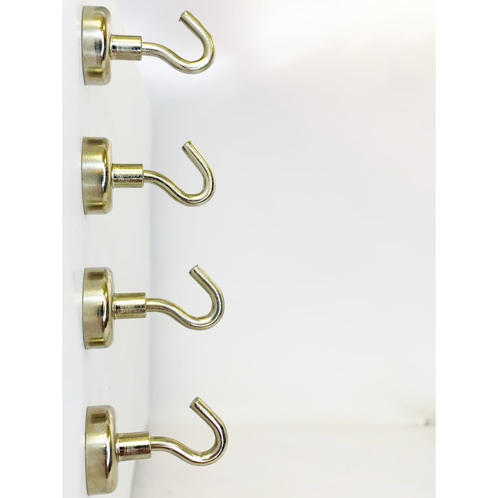 Магнитный крючок Проф-Магнит E20 - 4 шт. PMYP-Е-20 может удержать вес до 9кг. Как и у всех магнитный крючков у Е20 выкручивается стальной крюк и вместо него можно вкрутить болт, шуруп или шпильку с резьбой М4, а также заменить на более длинный крюк или же согнуть стандартный крюк в кольцо. Аккуратный и блестящий внешний вид дает возможность использовать его не только в гараже, подсобных помещениях но и в интерьер дома, квартиры.