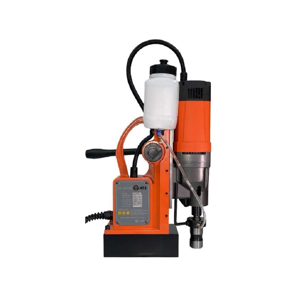 Магнитный сверлильный станок AT-S SU-23/60E - модель, укомплектованная под различные задачи производства. Используется для сверления отверстий корончатыми и спиральными сверлами. Для сверления корончатыми сверлами комплектуется держателем МК2/Weldon 19 с подачей СОЖ. Сверла спиральные с коническим хвостовиком КМ2 используются без держателя, для работы спиральными сверлами с коническим хвостовиком КМ1 предусмотрена втулка переходная КМ1/КМ2, для сверления отверстий диаметром до 13 мм с цилиндрическим хвостовиком применяется кулачковый патрон с адаптером, также в комплекте. Магнитное основание позволяет легко и просто зафиксировать оборудование на металлической поверхности. Универсальная система охлаждения, состоящая из бачка для СОЖ, сегментной трубки, крепящейся на магните и трубочки соединения, может использоваться с различной оснасткой.