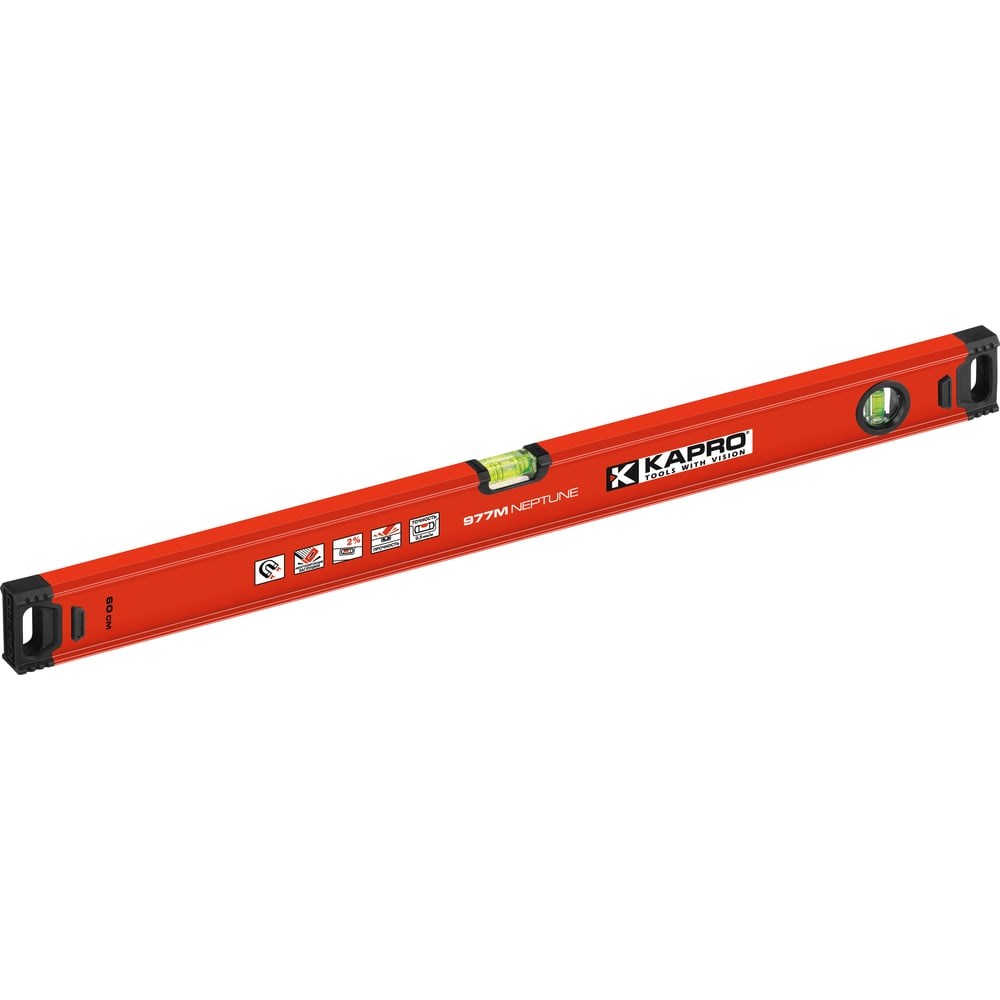 Уровень Kapro магнитный NEPTUN 977-40-60М представляет собой профессиональный инструмент для замера неровностей. "2 прочные полиакриловые колбы с фиксацией на эпоксидный клейИзмерение уклонов величиной 2%Фрезерованная рабочая поверхностьЛегкий прочный алюминиевый корпус с увеличенными ребрами жесткостиАмортизирующие резиновые торцевые заглушкиПротивоскользящие выносные элементыТочность: 0,5 мм/м"