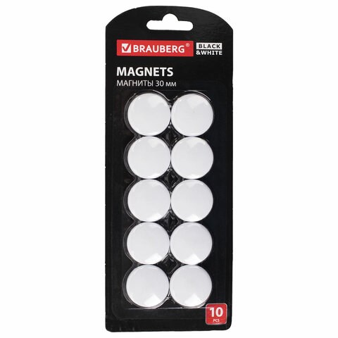 Магниты BRAUBERG "BLACK&WHITE" УСИЛЕННЫЕ 30 мм, НАБОР 10 шт., белые, 237467