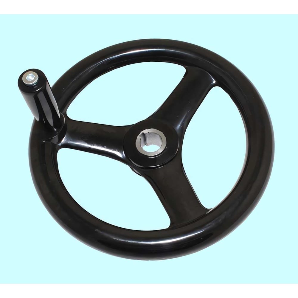Маховик TLX 125x12x30x4мм DxdxHxb с 3-мя спицами, бакелит с ручкой 65918 используется как оснастка или штурвал оборудования для контролируемого ручного управления движением подвижной частью машины. Модель в виде обода на спицах легче дисковых маховиков и позволяют работать разными ручными хватами. Это удобно при длительной работе оператора. Изделие выполнено из качественного и прочного бакелита. Материал имеет противоскользящий эффект, что облегчает работу оператора.