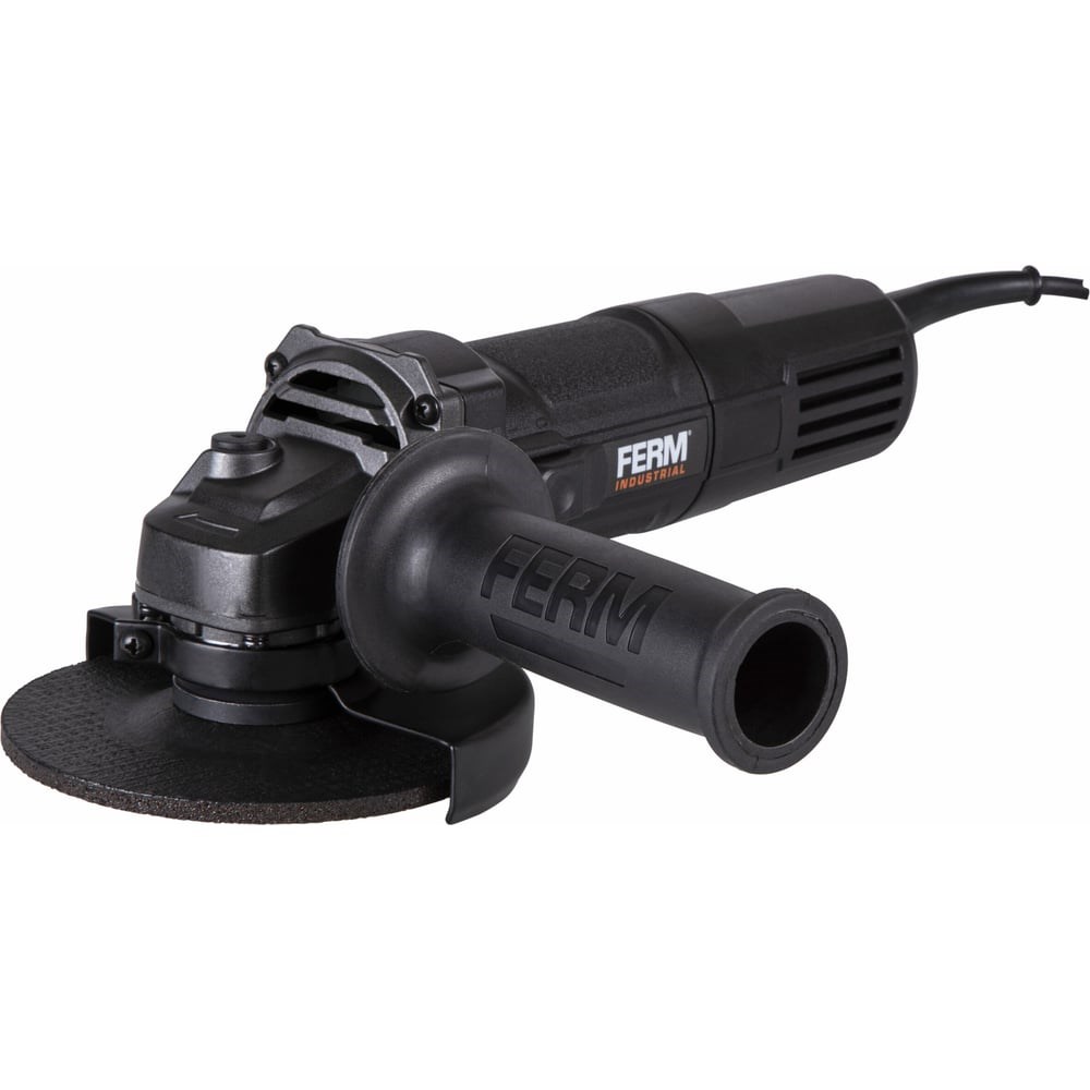 Малая углошлифмашина FERM AGM1114P – компактная модель для работы в ограниченном пространстве. Подходит для резки водопроводных труб, болтов и алюминиевых профилей, механической обработки (сварка) швов, снятия заусенцев с резаного металла, удаления ржавчины, шлифовки пазов для кабелей, резки настенной и напольной плитки. Свободу передвижения по строительной площадке гарантирует длинный 3-м метровый сетевой кабель. Предохранительный выключатель и защита от перезапуска предотвращают нежелательное включение.