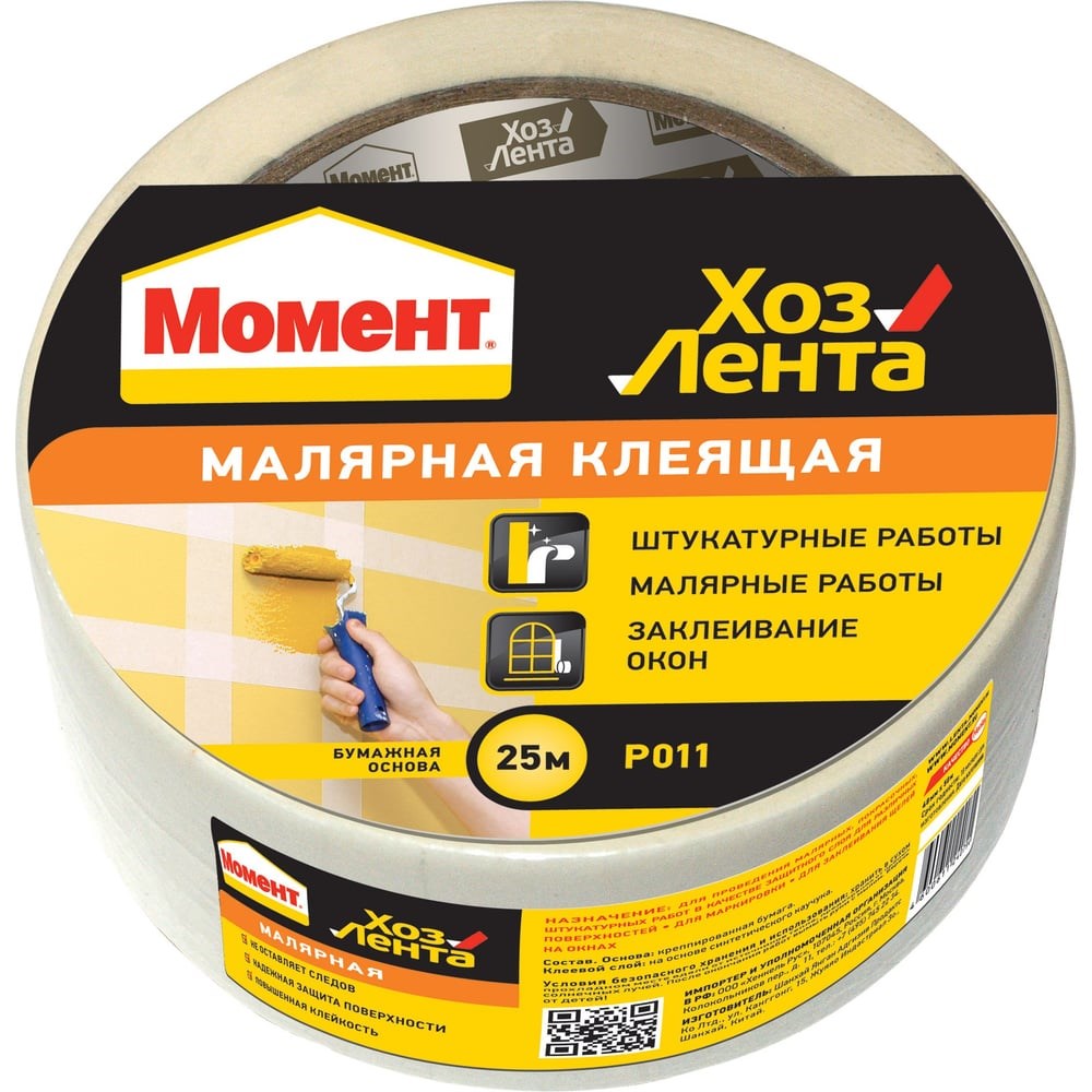 Малярная ХозЛента Момент 25 м 1690196 предназначена для проведения малярных и строительно-отделочных работ, защищая поверхности от краски и строительных растворов. Изделие не оставляет следов после демонтажа. Лента обладает повышенной клейкостью.