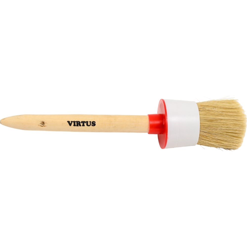 Малярная кисть VIRTUS круглая Standard, №16 55 мм 001020016 применяется для нанесения лакокрасочных материалов на узкие и труднодоступные поверхности. Эффективно используется для лакокрасочных материалов, растворяющихся органическими растворителями. Кисть изготовлена из натуральной щетины, надежно закрепленной в металлическом бандаже.