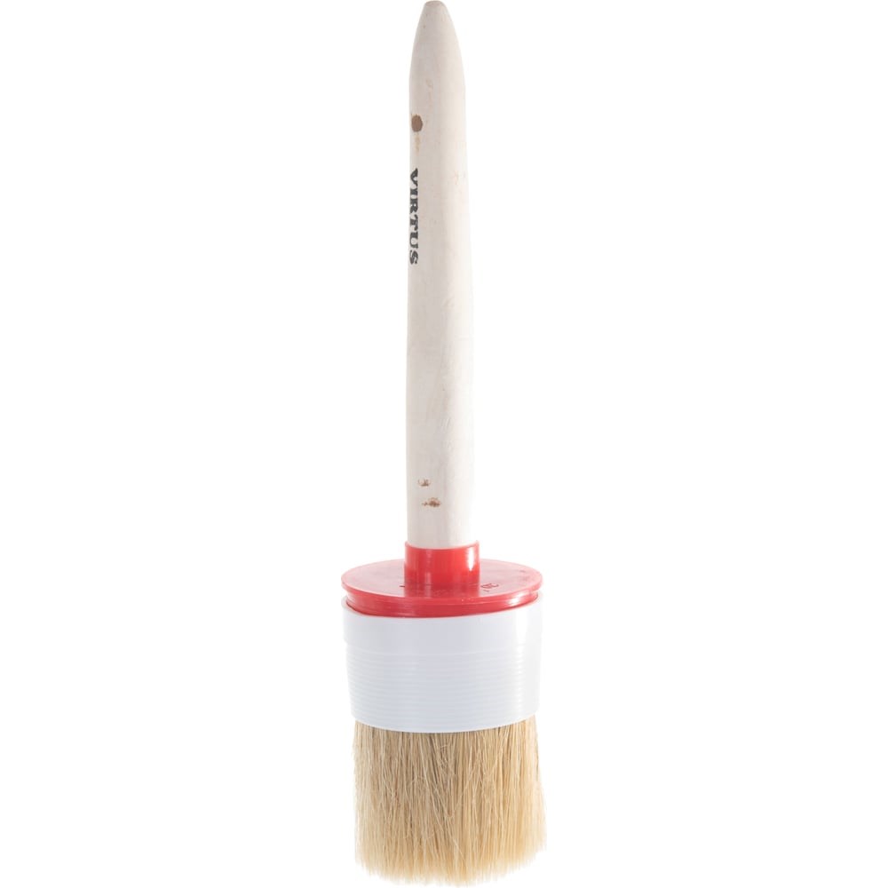 Малярная кисть VIRTUS круглая Standard, №20 65 мм 001020020 применяется для нанесения лакокрасочных материалов на узкие и труднодоступные поверхности. Эффективно используется для лакокрасочных материалов, растворяющихся органическими растворителями. Кисть изготовлена из натуральной щетины, надежно закрепленной в металлическом бандаже.