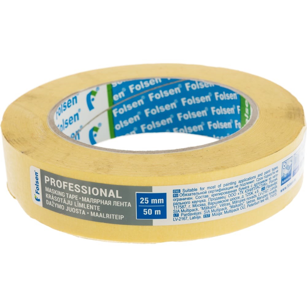 Малярная лента Folsen желтая 80oC 25мм x 50м 02225 представляет собой изделие для защиты поверхностей во время проведения строительных или покрасочных работ. Лента состоит из крепированной бумаги и клеевого слоя. Температурная устойчивость ленты - 80 °С.