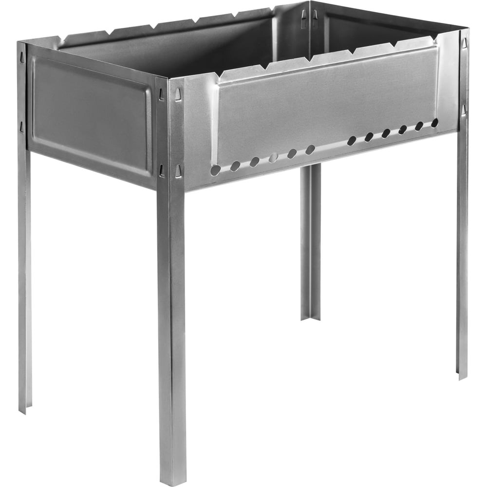 Облегченный мангал Palisad Camping 69544 размером 500 х 300 х 500 мм, с ребрами жесткости, позволяет готовить блюда из мяса, птицы, рыбы и овощей под открытым небом. Толщина стенок составляет 0,6 мм, поэтому мангал прослужит долго. Он весит 2,5 кг, за счет чего его удобно брать на дачу, в поход или на пикник. Рекомендуется дополнительно приобрести веер для раздувания углей Palisad Camping 69542.