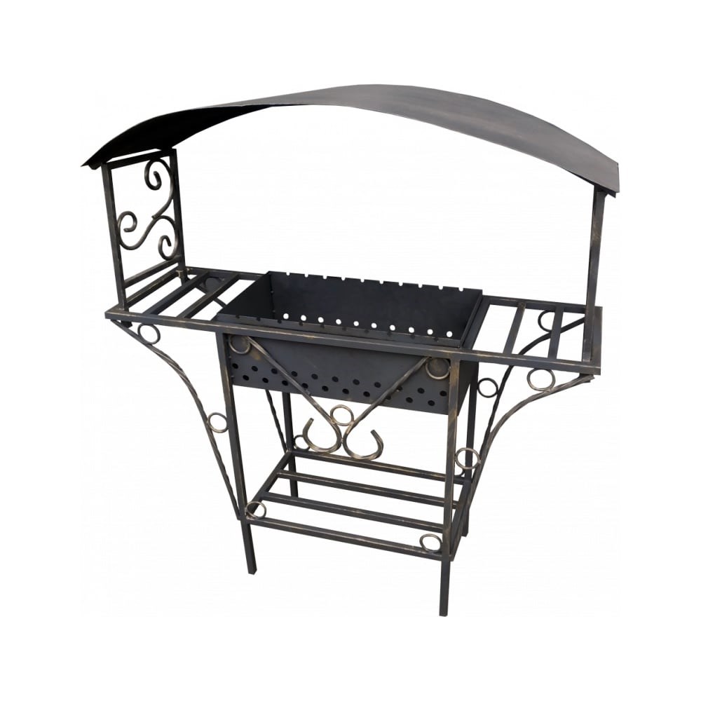 Мангал с крышей Станкоинструмент и оснастка Мангал МС-11 4811381004763 станет очагом тепла и уюта на вашем участке. Используется для приготовления пищи на свежем воздухе. Оформлен минималистичным рисунком из стального прута. Изготовлен из прочного материала и покрыт термостойкой краской. Это гарантирует долгий срок службы. По бокам имеются два встроенных мини-столика, на которых удобно выполнять подготовку к жарке мяса или размещать уже готовые шашлычки. Внизу оборудована поленница для комфортного хранения растопки.
