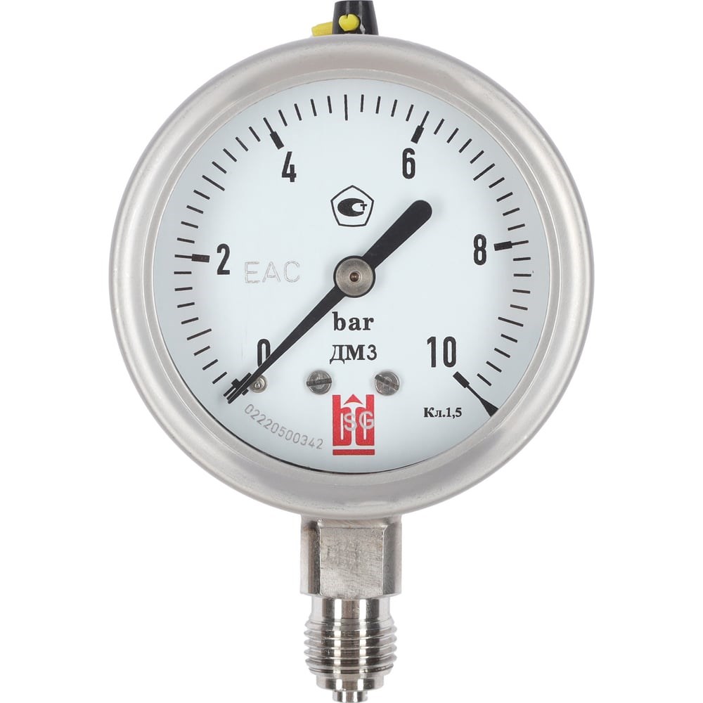 Манометр общетехнический с трубчатой пружиной. Тип ДМ (МОДИФИКАЦИЯ 3). Манометр применяется для измерений давления газообразных и жидких, не сильно вязких и не кристаллизирующихся сред, не агрессивных по отношению к нерж. стали (аммиак, щелочные и солевые растворы и др). Используется в том числе в местах с повышенной вибрацией и пульсацией в пищевой, пивоваренной и фармацевтической промышленности, в криогенной технике, химической и нефтехимической индустрии, в ядерных и холодильных установках, в насосах, прессах, компрессорах, турбинах, дизельных двигателях и т.п. Рекомендуется для применения с разделителями сред: РМ5319, РМ5320, DA, DB, DE, DF, DH, DJ и др.