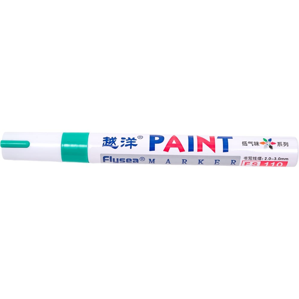 Маркер-краска Flysea по металлу Paint Marker FS-110 с наконечником (2-4 мм), белый FS-110-white обеспечивает ровный и точный след. Маркер заправлен краской на масляной основе и имеет фетровый пулевидный наконечник стандартной толщины (3 мм). Подходит для нанесения несмываемых надписей и рисунков на любые поверхности как внутри помещений, так и в уличных условиях. Маркировка не растекается, сохраняет прямую линию, что значительно улучшает результат применения инструмента. Краска имеет высокую скорость высыхания - ниже риск размазать линию или повредить разметку иным способом сразу после нанесения. Благодаря материалу наконечника исключены пробелы при нанесении, а краска равномерно высыхает на поверхностях любой сложности.Инструкция по использованию маркера:Энергично потрясти маркер с закрытым колпачком минимум 30 секунд для перемешивания краски;Снять колпачок, направить маркер наконечником вверх и нажать пальцем на наконечник 2-3 раза для выпуска лишнего воздуха;Направить маркер наконечником вниз и надавить им несколько раз на твердую поверхность пока наконечник не пропитается краской (наконечник утапливается в корпус -> открывается клапан -> краска пропитывает наконечник).Нанести надпись/рисунок;Плотно закрыть колпачок сразу после окончания нанесения для предотвращения высыхания краски, пропитавшей наконечник;Повторить пункт №3, если краски на наконечнике становится недостаточно.