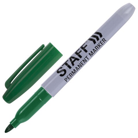 Маркер перманентный STAFF EVERYDAY PM-233, ЗЕЛЕНЫЙ, эргономичный корпус, круглый наконечник 2 мм, 151236