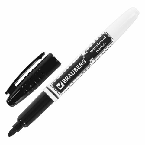 Маркер стираемый для белой доски ЧЕРНЫЙ, BRAUBERG, 4 мм, с клипом, эргономичный корпус, 150846