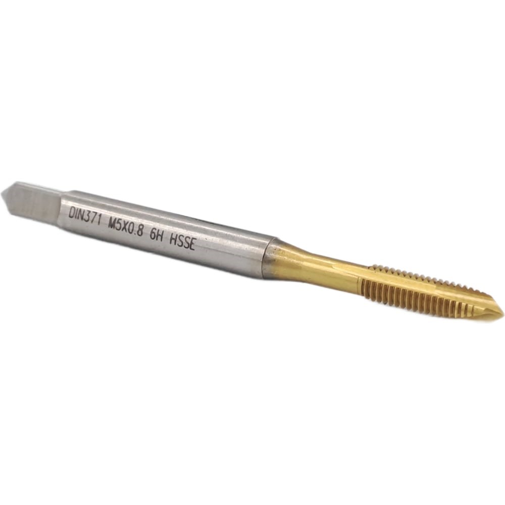 Машинно-ручной метчик TORNERI М 5х0.8 HSSE 6H DIN371 TiN для сквозных отверстий 036409 изготавливают из более износостойких сталей или сплавов. В отличие от ручных, машинные метчики используются для изготовления резьбы за один проход. На конце хвостовика такого инструмента находится квадрат и специальная проточка, что позволяет фиксировать инструмент и в воротке при выполнении ручных работ, и в станке при обработке машинным способом. Изготовлено из стали Р6М5 Для создания сквозных отверстий Метчик размерности М5 Шаг резьбы 0,8 Изготовлен по стандарту DIN371