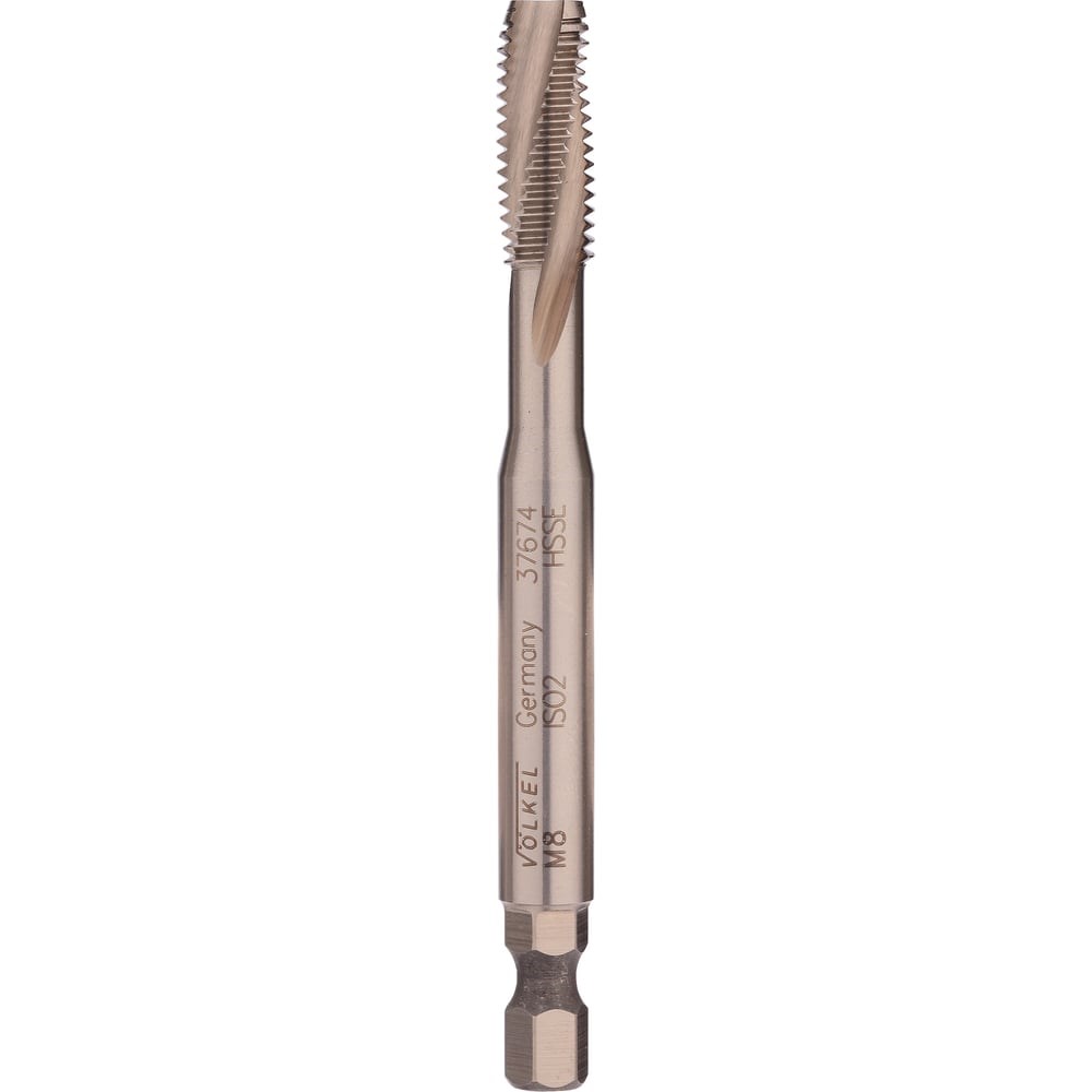 Машинный метчик с винтовой канавкой предназначен для создания внутренней резьбы в различных материалах. Изготовлен из высококачественной быстрорежущей стали HSSE, которая гарантирует прочность и износостойкость. Метчик имеет 6-гранный хвостовик 1/4", что позволяет использовать в качестве держателя дрель-шуруповерт, а так же стандартные магнитные держатели для бит. Спиральная канавка с углом наклона 15° обеспечивает оптимальное стружкоудаление. Инструмент подходит для обработки заготовок, выполненных из легированной или нержавеющей стали, чугуна, алюминия, меди, бронзы, цинка, с пределом прочности до 900MPa.