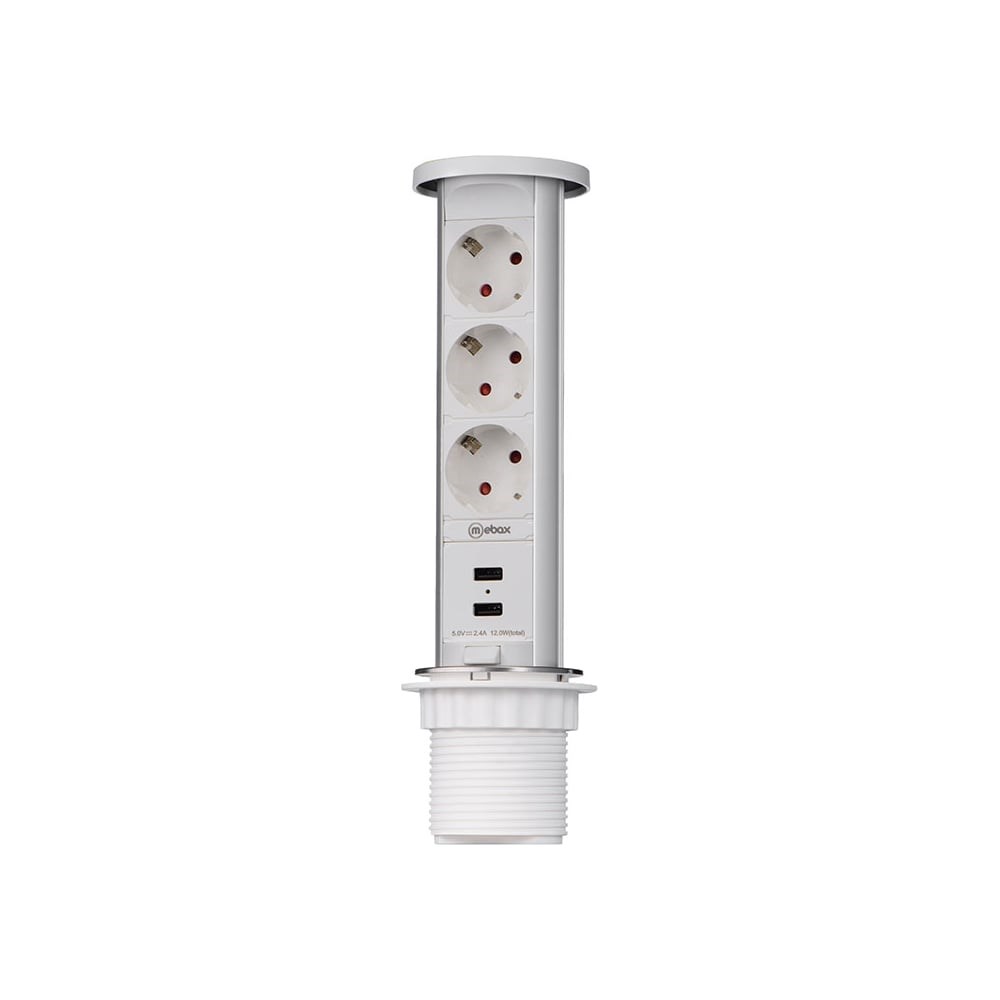 Главной отличительной чертой Mebax 105W является наличие влагозащитной крышки, препятствующей проникновению влаги внутрь устройства. Стильный минималистичный дизайн будет гармонично смотреться в интерьере. Стабильная работа Функциональное решение для дома и офиса, которое позволяет одновременно заряжать мобильные устройства и подключать бытовые приборы. Стабильная работа без поломок и короткого замыкания. Решение для кухонь Влагозащитная крышка защищает компоненты устройства от попадения капель воды, когда блок неакти- вен и находится под столешницей. Это позволяет монтировать розетку на кухнях вблизи «мокрых точек».