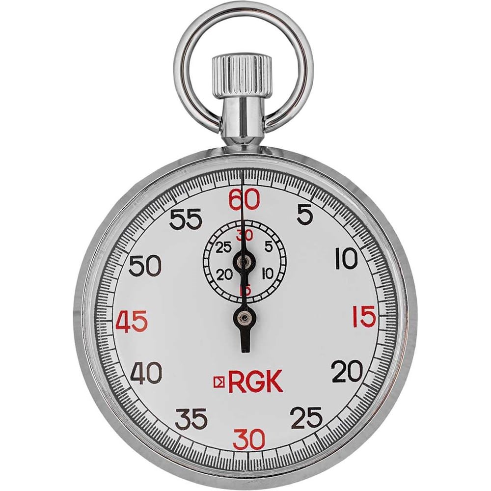 Секундомер механический RGK SWM-2А6 с поверкой – простое и надежное устройство для измерения интервалов времени часового типа с ручным управлением, цена деления секундной шкалы которого составляет 0,2 с, а емкость минутного циферблата – 30 мин. Данная модель внесена в Госреестр СИ и может применяться для хронометража официальных спортивных состязаний, контроля технологических процессов на производстве, проверки соответствия качественных характеристик продукции, научных исследований, экспертиз и т.п. При этом нет необходимости обращаться в аккредитованные метрологические органы для подтверждения фактических точностных параметров изделия, так как оно уже прошло первичную поверку.Конструкционное исполнениеРучной секундомер выполнен по классической схеме на основе часового механизма на 13 камнях с подпружиненным балансом, выполняющим возвратно-вращательные движения, за счет чего обеспечивается стабильность хода в любом положении. Он приводится в действие ходовой пружиной из никелевого сплава, сохраняющей упругие качества в течение всего срока эксплуатации прибора. Как устройство однострелочного типа, RGK SWM-2А6 снабжен основным и дополнительным циферблатами, помещенными за стеклом на лицевой части круглого корпуса диаметром 50 мм.