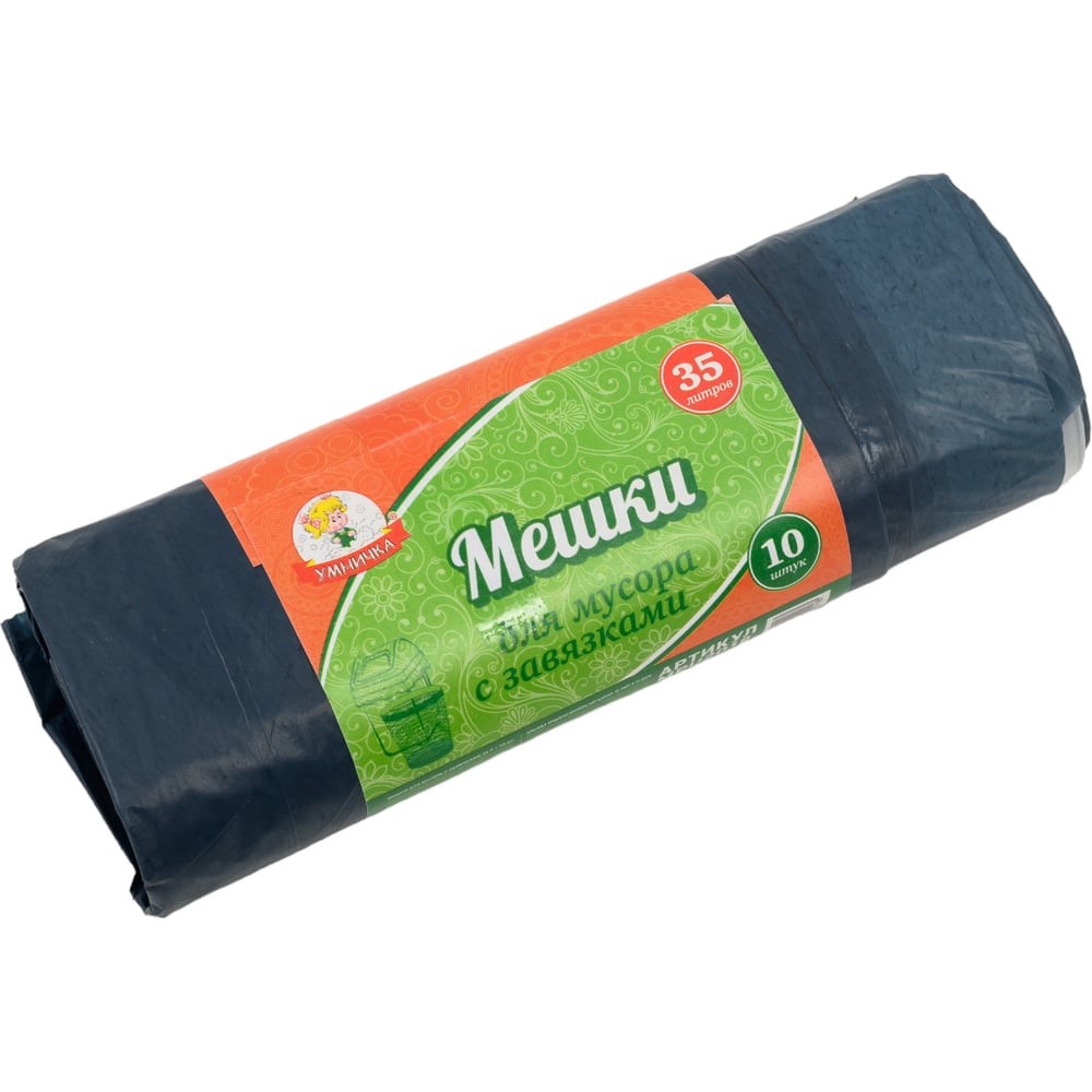 Мешки с завязками (10 шт; 35 л; 30 мкм; ПВД) для мусора Умничка MPU2018