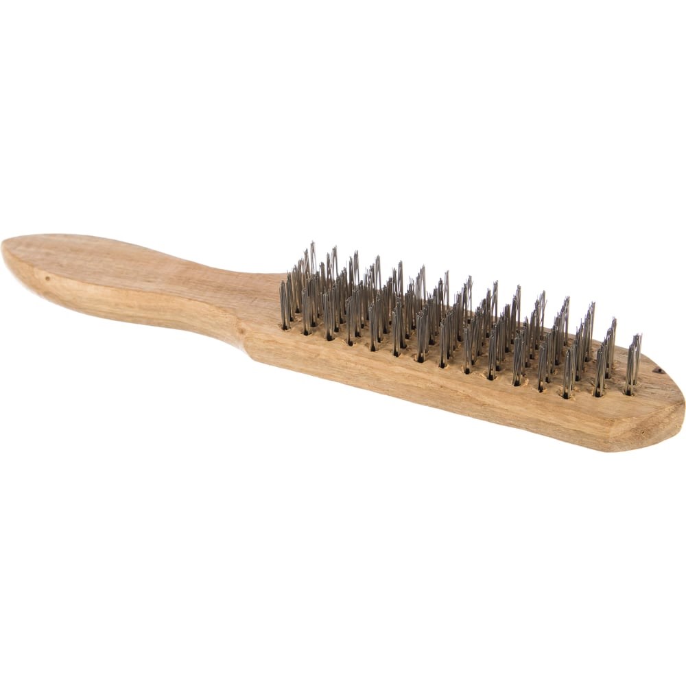 Металлическая 6-рядная щетка SPARTA 748265 имеет деревянную основу. Благодаря стальной щетине щетка применяется для чистки металлических поверхностей. Форма рукоятки способствует удобному удержанию щетки.