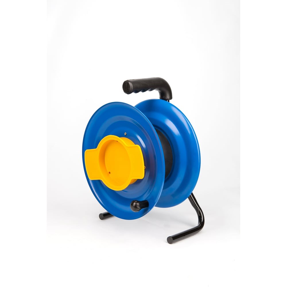 Металлическая катушка для удлинителя без розеток- предназначена для удобного хранения и перемещения силового провода электрического удлинителя.Катушка - это удобное приспособление для защиты длинного провода от спутывания, его хранения и транспортировки. Изделие оснащено устойчивой металлической опорой, практичной ручкой для переноски и устройством для быстрого сматывания шнура питания удлинителя.Удлинитель на катушке используется на строительных площадках, в производственных цехах и бытовых условиях, позволяет присоединить несколько электрических приборов одновременно. Удлинитель на катушке необходим там, где осуществляется работа с электрическим оборудованием, находящимся на большом расстоянии от сети электропитания.На корпусе катушки располагается устойчивая подставка и специальная рукоятка для удобства переноски удлинителя. Катушка без удлинителя, диаметр 30 см, без розеток, металлическая катушка без провода, металлическая тренога. Длина провода с сечением 3х2,5 составит ±50 м.