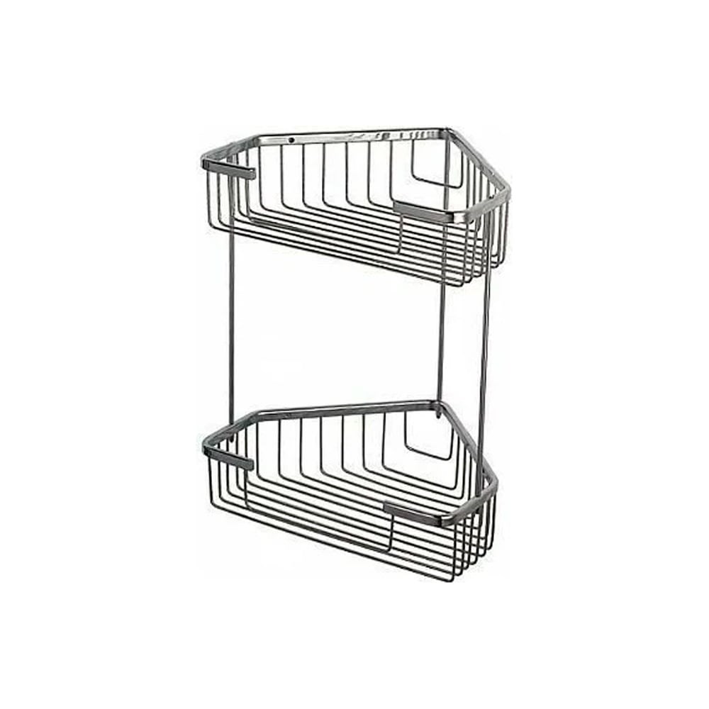 Металлическая полка Ekko 2-ярусная, угловая E335-1 - функциональный аксессуар для ванной комнаты, с помощью которого можно организовать хранение банных принадлежностей. Угловое расположение позволяет сэкономить свободное пространство.