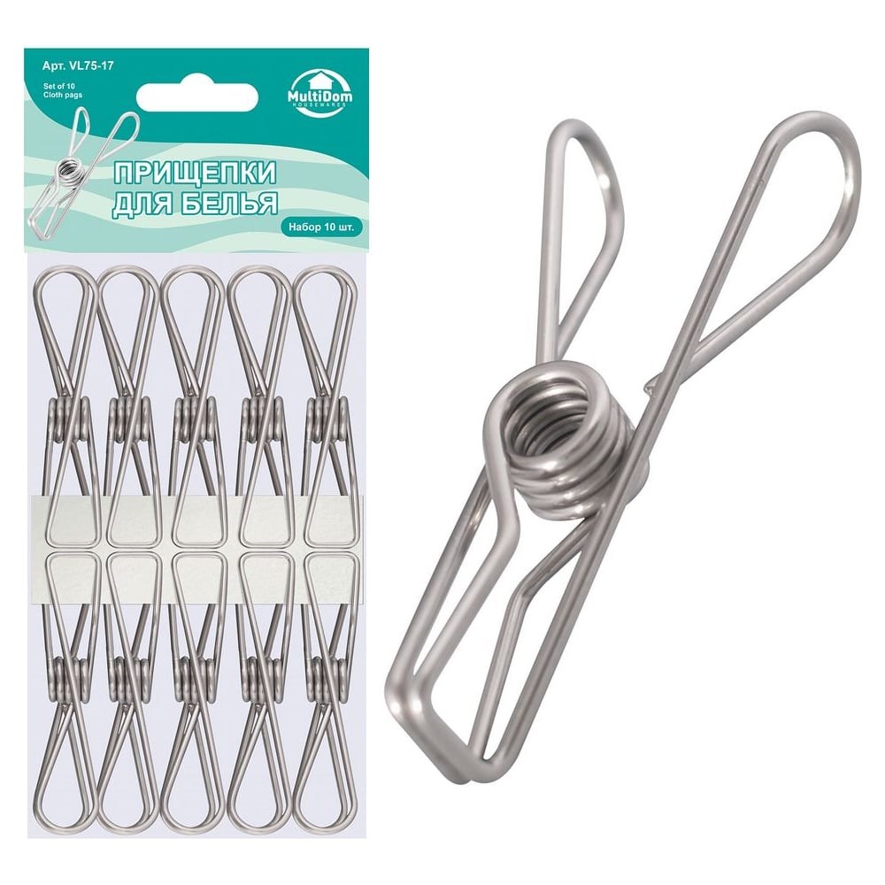 Металлические прищепки для белья МУЛЬТИДОМ набор 10 шт NEW VL75-17 предназначены для фиксации белья во время просушивания на улице или балконе. Не подвержены коррозии, благодаря чему не боятся влаги. Выполнены из нержавеющей стали, поэтому имеют долгий срок службы. За счет высокой прочности прищепки надежны в использовании.