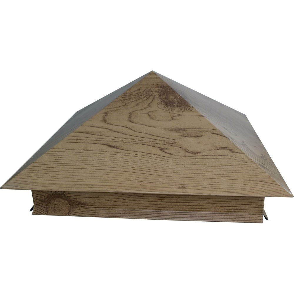 Металлический колпак на столб ПРОФМЕТСТИЛЬ светлый дуб 621 защищает верхние участки столбов от образования наледи. Осадки, проникающие в кирпич или камень, при замерзании разрушают верхний слой. Колпак плотно обхватывает кирпичную или каменную кладку, предотвращая ее намокание и обледенение. Также колпак представляет собой декоративный элемент - он придает забору эстетичный и завершенный вид. Посадочное место 390х390 мм.