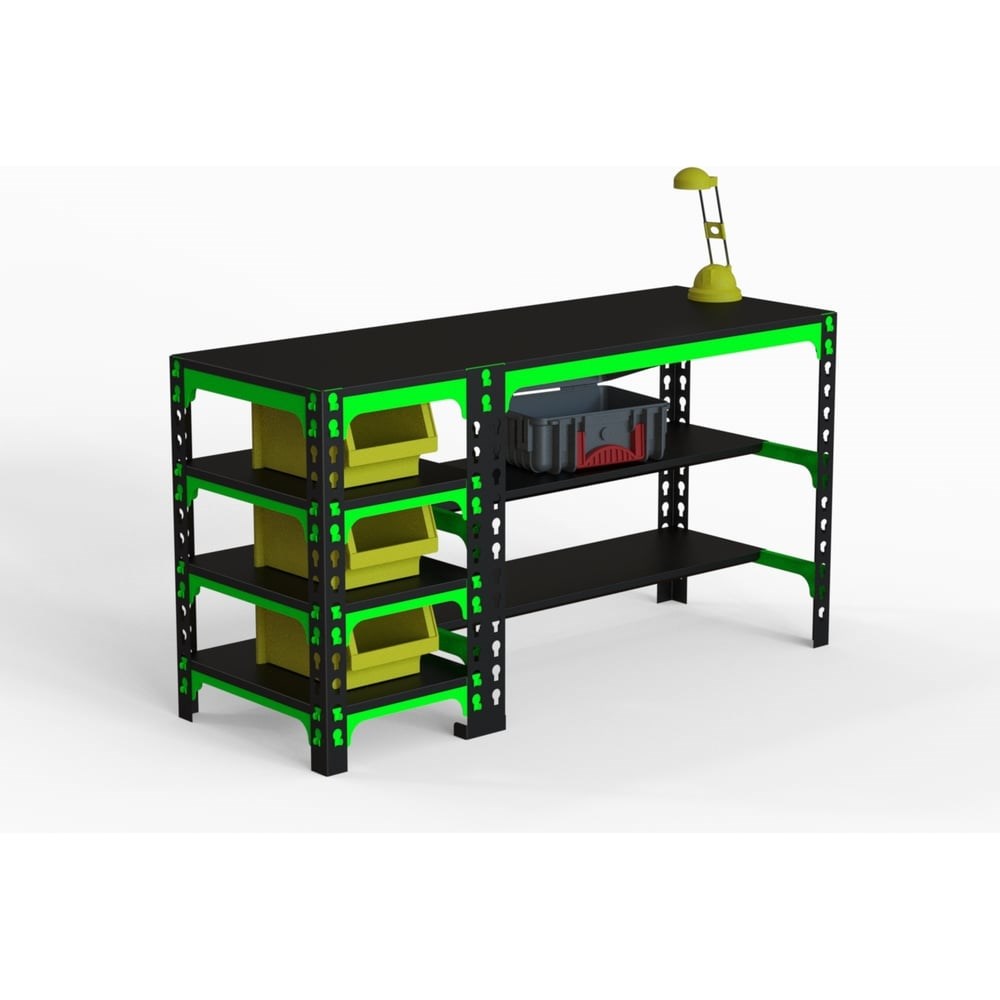 Стол предназначен для удобной организации отдельного рабочего места на производствах, складах, гаражах, мастерских, и на других объектах. Конструкция имеет прочные опоры из углового профиля. Специальная перфорация позволяет изменить высоту полок. Столешница выполнена из прочного листового металла и выдерживает значительные нагрузки. Можно использовать в столярных и слесарных мастерских. Рациональное хранение различных предметов на полках. Стойки траверсы стола выполнены из стали толщиной 2 мм, столешница - толщиной 1.5 мм, а полки - 0.8 мм. Конструкция сборно-разборная, помимо самой столешницы имеется 2 основные и 3 боковые полки.Допустимая нагрузка на конструкцию – до 260 кг.