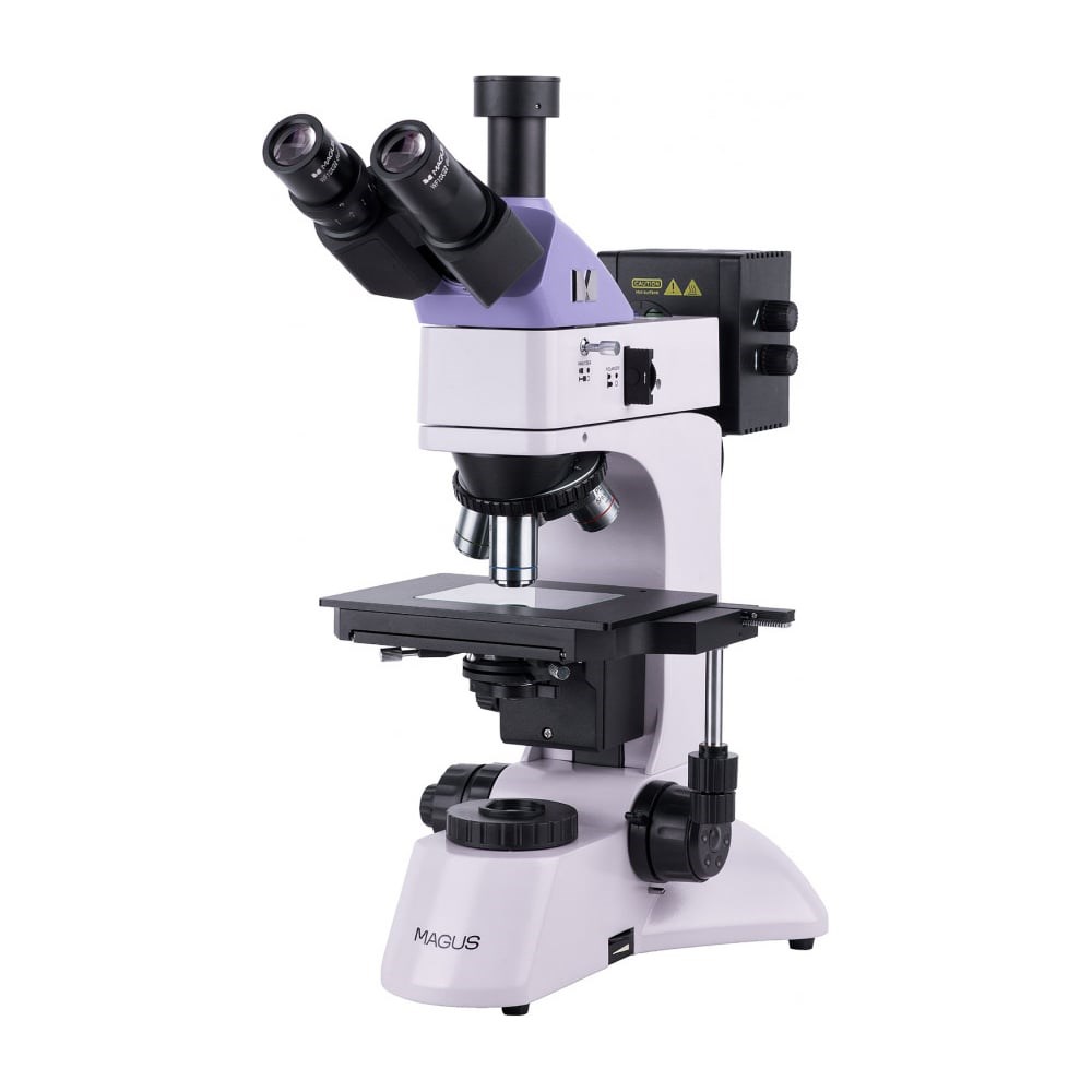 Magus Metal 600 BD – это металлографический микроскоп для работы в отраженном свете с использованием методов светлого и темного поля и простой поляризации. Используется для изучения металлов, сплавов и полупроводниковых материалов на плоскопараллельных шлифах с полированной исследуемой поверхностью. Оснащен осветителем проходящего света для изучения полупрозрачных образцов: пленок и объектов на фильтрах. Микроскоп предназначен для оснащения лабораторий контроля качества, промышленных производств, кафедр высших учебных заведений. Оптическая схема Тринокулярная насадка имеет отдельный канал визуализации для установки цифровой камеры (приобретается отдельно). При помощи делителя светового потока 100% света направляется или на камеру, или в окулярные тубусы. Диоптрийная подвижка находится на левом тубусе. В револьверном устройстве 5 гнезд для установки объективов. Особенность этого микроскопа – объективы с увеличенным рабочим расстоянием с маркировкой BD, т. е. предназначенные для наблюдений в светлом и темном поле. В комплект включено 4 объектива, поэтому в револьвере одно место свободно для установки дополнительного объектива. Револьвер повернут «от наблюдателя» и введенный в ход лучей объектив хорошо виден пользователю. Оптика дает увеличение в диапазоне от 50 до 400 крат. Система освещения Источники отраженного и проходящего света – это галогенные лампы, которые излучают теплый и приятный для глаз свет, комфортный при длительных наблюдениях. Лампа проходящего света имеет мощность 30 Вт, лампа отраженного света – 50 Вт. Мощность осветителя отраженного света увеличена специально для комфортной работы в темном поле. Осветительная система отраженного света также включает светофильтры, устройство для работы в темном поле, встроенный анализатор и съемный поляризатор, полевую и апертурную диафрагмы. Диафрагмы и источник света центрируются, что позволяет гибко настраивать освещение по методу Кёлера в отраженном свете. В осветительной системе проходящего света установлен конденсор Аббе с апертурной диафрагмой и откидной линзой, используемой с объективами малого увеличения, а также полевая диафрагма – все это дает возможность использовать метод Кёлера в проходящем свете. Механика На предметном столике можно закреплять объекты высотой не более 20 мм. Столик передвигается в двух взаимно перпендикулярных плоскостях и дополнен прозрачной вставкой для работы с полупрозрачными образцами. Образец перемещается вместе со столиком. Рукоятки фокусировки расположены коаксиально по обеим сторонам корпуса. Грубая фокусировка с блокиратором и настройкой жесткости хода дополнена тонкой фокусировкой для более точной наводки на резкость. Так как рукоятки находятся у основания микроскопа, наблюдатель может свободно положить руки на стол, а не держать их на весу в напряжении. Аксессуары Расширить возможности микроскопа Magus Metal 600 BD можно при помощи дополнительных аксессуаров. В линейку входят: окуляры, объективы для светлого и темного поля с увеличенным рабочим расстоянием, цифровые камеры, калибровочные слайды.