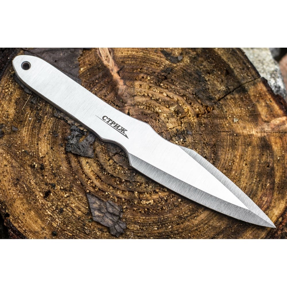 Метательный нож Стриж используется на соревнованиях по спортивному безоборотному метанию. Благодаря сравнительно небольшому весу и удобной рукояти неплохо подойдет для небольшой руки. Его можно использовать для обучения детей спортивной технике метания. Широко используется в клубе метания ножей 78 легион (Санкт-Петебург). Нож изготовлен из нержавеющей стали 420, которая кроме высокой стойкости к коррозии характеризуется отличной прочностью и ударной вязкостью. Метательные ножи из нее не требуют особого ухода и практически «не убиваемый».