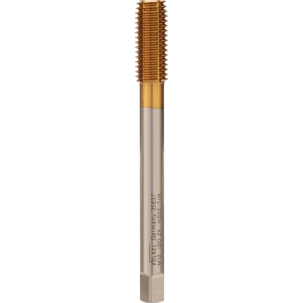 Метчик раскатник VOELKEL М 12, шаг 1,75 мм, HSSE-TiN DIN376 V35637 предназначен для создания внутренней резьбы в различных материалах. Метчик отличается от других тем, что в процессе изготовления резьбы происходит не резка материала, а его уплотнение тем самым не повреждается структура волокна. Не образуется стружка, а значит не требуется создание условий для ее отведения. Полученная резьба - более прочная, т.к. материал в области витков уплотняется, а не вырезается. Раскатник изготовлен из высококачественной быстрорежущей стали HSSE, которая гарантирует прочность и износостойкость. Покрытие TiN (нитрид титана) снижает энергоемкость, повышает надежность инструмента. Инструмент подходит для обработки заготовок, выполненных из легированной или нержавеющей стали, чугуна, алюминия, меди, бронзы, цинка, с пределом прочности до 900MPa. Наличие масляных канавок дает возможность использовать раскатник для глубины резьбы более 1,5 x D для оптимизации смазки. Допуск: ISO2X/6HX.