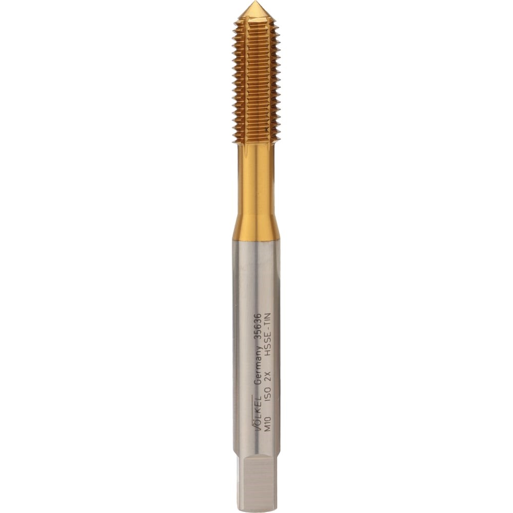 Метчик раскатник VOELKEL М 10, шаг 1,5 мм, HSSE-TiN DIN371 V35636 предназначен для создания внутренней резьбы в различных материалах. Метчик отличается от других тем, что в процессе изготовления резьбы происходит не резка материала, а его уплотнение тем самым не повреждается структура волокна. Не образуется стружка, а значит не требуется создание условий для ее отведения. Полученная резьба - более прочная, т.к. материал в области витков уплотняется, а не вырезается. Раскатник изготовлен из высококачественной быстрорежущей стали HSSE, которая гарантирует прочность и износостойкость. Покрытие TiN (нитрид титана) снижает энергоемкость, повышает надежность инструмента. Инструмент подходит для обработки заготовок, выполненных из легированной или нержавеющей стали, чугуна, алюминия, меди, бронзы, цинка, с пределом прочности до 900MPa. Наличие масляных канавок дает возможность использовать раскатник для глубины резьбы более 1,5 x D для оптимизации смазки. Допуск: ISO2X/6HX.