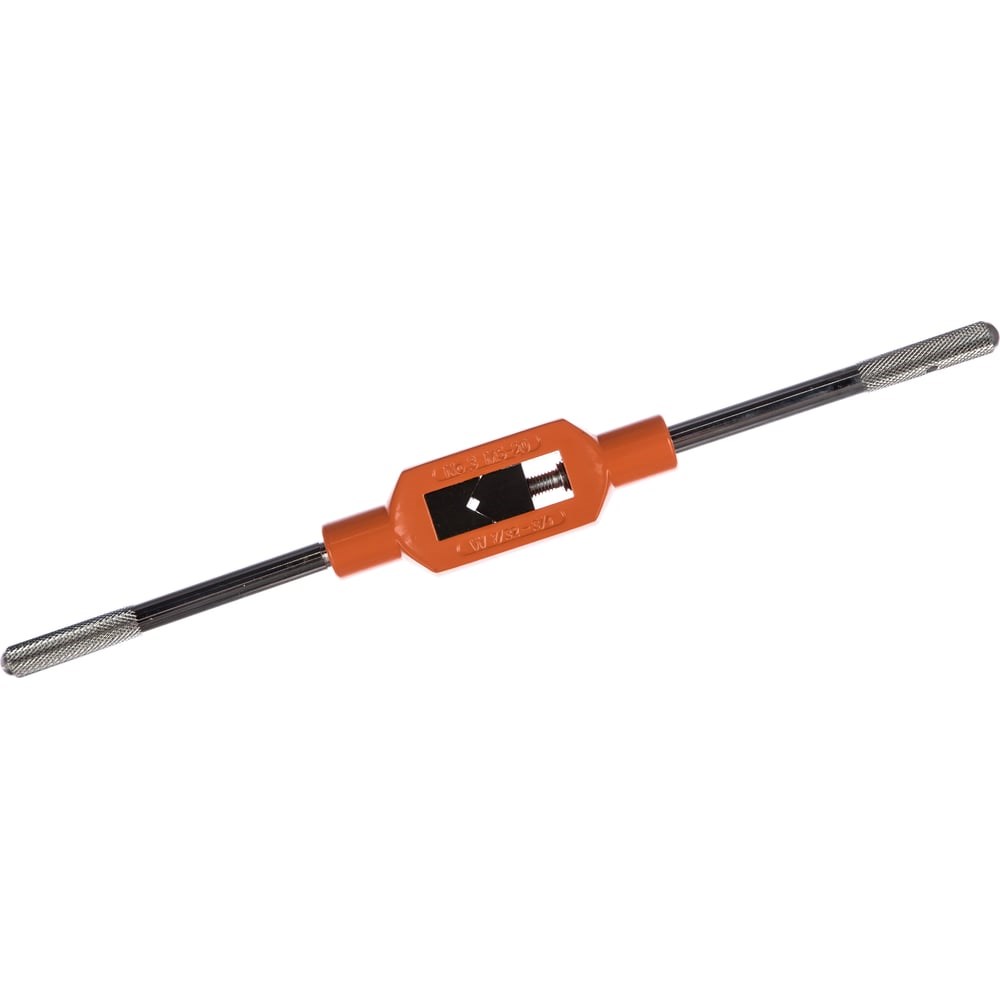 Метчикодержатель М5-М20 АвтоDело 40913 15446 оснащен рифлеными рукоятками. Их удобно держать в ладонях и вращать инструмент без больших усилий. Механизм зажима метчика не разбалтывается даже при длительной эксплуатации.