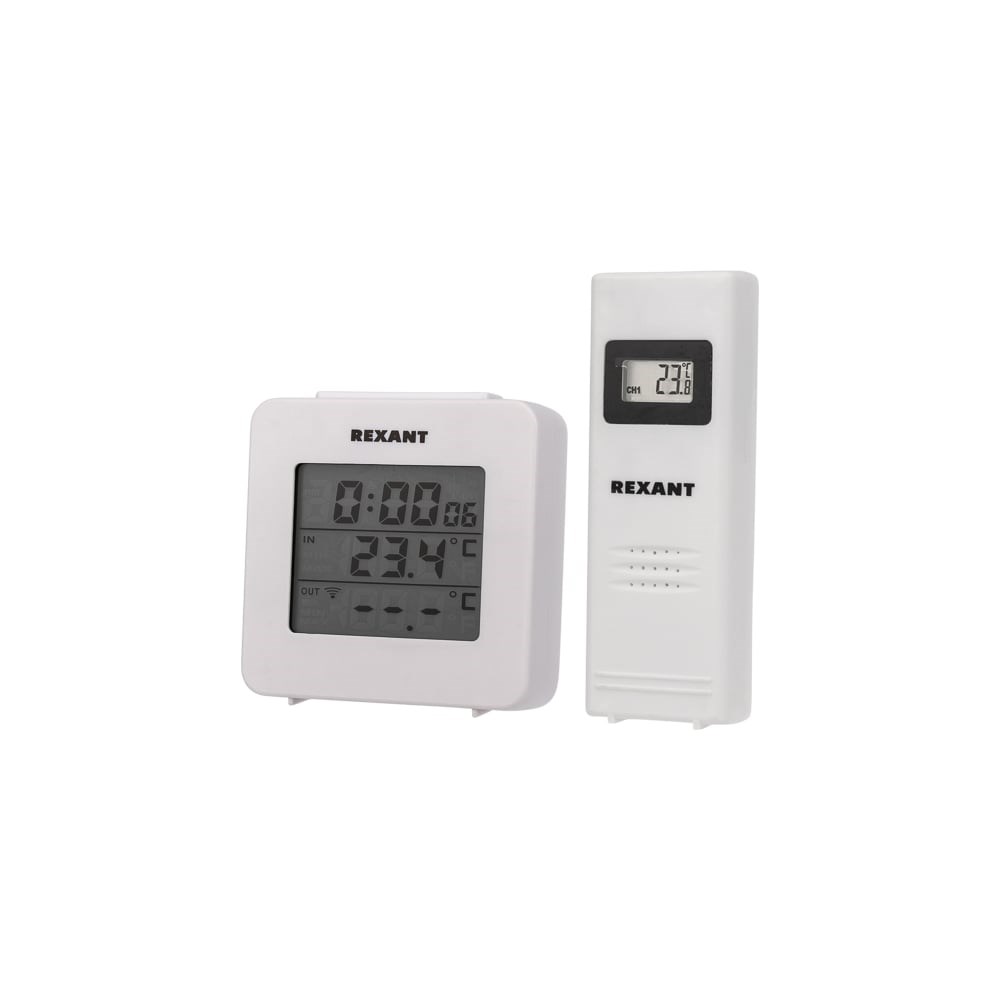 Электронный термометр REXANT с часами и беспроводным выносным датчиком предназначен для измерения показаний температуры внутри и снаружи помещений. Широкий функционал устройства делает его оптимальным для использования в домашних условиях, в офисе, а также в учебных и медицинских учреждениях.Прибор регистрирует в памяти максимальное и минимальное значения температуры. Для удобства использования температура может отображаться в градусах Цельсия или в градусах Фаренгейта (°C/°F). Выносной датчик имеет монитор с показаниями значений температуры и отверстие для крепежа на стену, что упрощает установку и использование.Диапазон рабочих температур термометра – 0...+50 °С, а внешнего датчика – -40...+70 °С. Цвет подсветки – синий. Источник питания: термометр - батарейка AAA х 2 шт., выносной датчик - батарейка AA х 2 шт. (не входят в комплект).