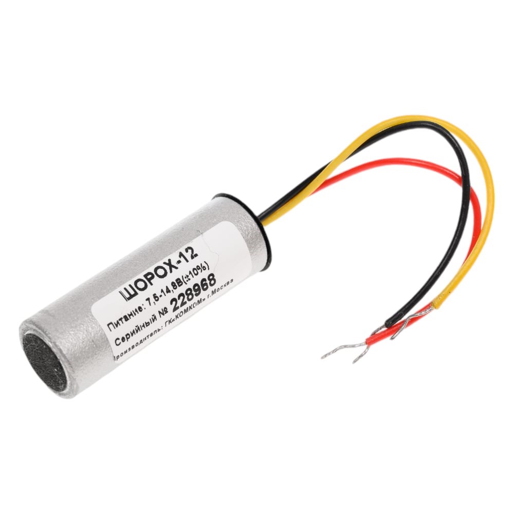 Микрофон ШОРОХ 12 - миниатюрный активный микрофон с высоким уровнем чувствительности без АРУ. Акустическая дальность диапазон - от 2 до 15 м (рекомендуем использовать на расстоянии не менее 2 метров от объекта наблюдения). Уровень сигнала 0,6 В. Экранирующий корпус из металла. Напряжение питания 7,5...14,8 В DC. Полоса пропускания 60-16000 Гц, соответствует требованиям к системам телефонии. Ток потребления 10 мА.