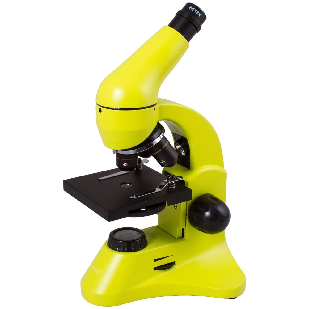 Микроскоп Levenhuk Rainbow 50L PLUS Lime\Лайм 69054 подходит для простых биологических исследований. Корпус выполнен из металла. Поставляется с инструментами и образцами для опытов. Качественная оптика. Линзы из оптического стекла отличается высокой прозрачностью, что гарантирует четкое и контрастное изображение. Удобная конструкция. Для комфортной работы окулярная трубка наклонена под углом 45° и может вращаться на 360°. Двойная подсветка. Благодаря верхней и нижней подсветке, прибор подходит для изучения прозрачных, непрозрачных и полупрозрачных объектов.