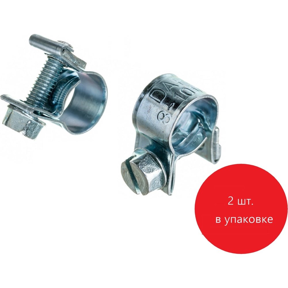 Хомут DAR, тип “МИНИ”, рабочий диаметр 8-10 мм, 2шт в упаковке, арт. 50620 применяется для соединения мягких тонкостенных трубок, или шлангов малого диаметра, работающих в условиях низкого давления. Благодаря качественной обработке и закруглению краев ленты, хомут мягко воздействует на шланг и не допускает повреждений при монтаже. Изготовлен из оцинкованной стали W1. Хомутная лента шириной 9 мм.