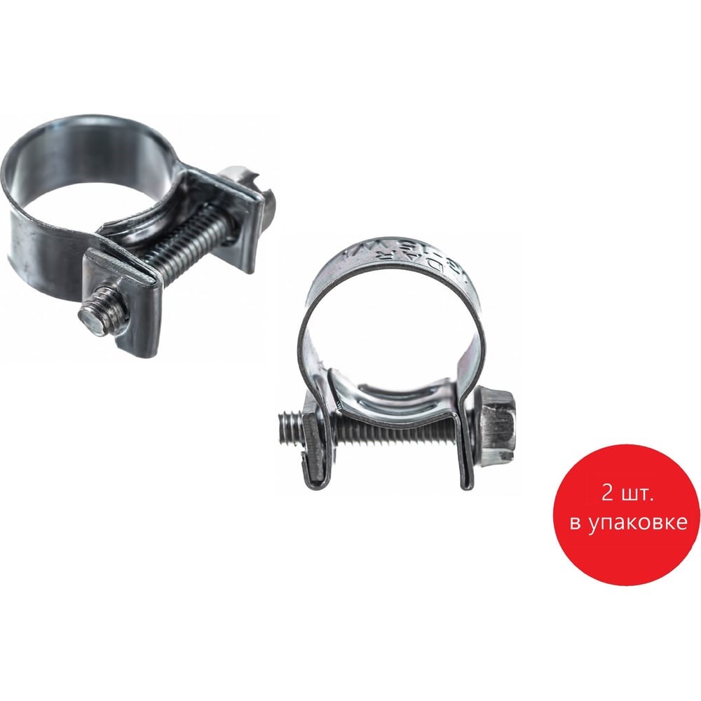 Хомут DAR, тип “МИНИ”, рабочий диаметр 13-15 мм, 2шт в упаковке, арт. 50675, применяется для соединения мягких тонкостенных трубок, или шлангов малого диаметра, работающих в условиях низкого давления. Благодаря качественной обработке и закруглению краев ленты, хомут мягко воздействует на шланг и не допускает повреждений при монтаже. Изготовлен из оцинкованной стали W1. Хомутная лента шириной 9 мм.