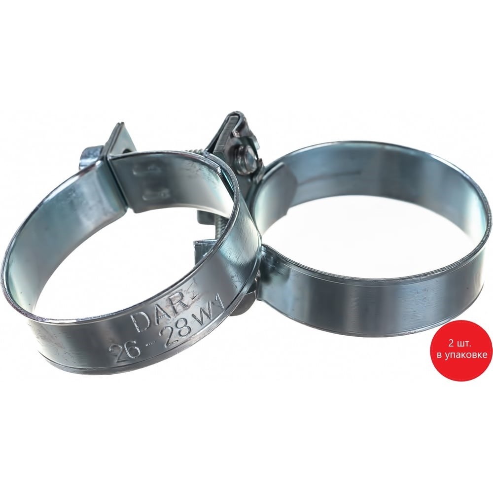Хомут DAR, тип “МИНИ”, рабочий диаметр 26-28 мм, 2шт в упаковке, арт. 50804, применяется для соединения мягких тонкостенных трубок, или шлангов малого диаметра, работающих в условиях низкого давления. Благодаря качественной обработке и закруглению краев ленты, хомут мягко воздействует на шланг и не допускает повреждений при монтаже. Изготовлен из оцинкованной стали W1. Хомутная лента шириной 9 мм.