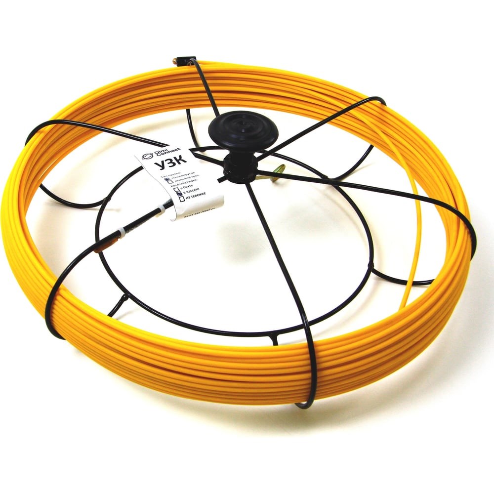Протяжка для кабеля мини OlmiOn УЗК d=4,5 мм L=30 м в кассете №2, желтый СП-К2-4,5/30 (устройство для закладки кабеля) в бухте - это самое простое, бюджетное, но при этом качественное и надёжное решение проблемы протяжки кабеля в металлорукава, трубы, короба и каналы при проведении монтажных работ по прокладке проводки для установки видеонаблюдения, систем контроля доступа, домофонов, охранной сигнализации, а также линий связи (интернет, телефон) в офисах, жилых и промышленных помещениях. Устройство представляет собой стеклопластиковый пруток, который снаружи покрыт специальной защитной оболочкой, выполненной из износостойкого полиэтилена высокой плотности. С одной стороны УЗК находится наконечник из латуни, на который в каждом конкретном случае, в зависимости от условий протяжки, можно накрутить жёсткую или гибкую насадку (последняя наиболее удобна для использования в каналах уже наполненных большим количеством кабелей или с высоким числом изгибов), а с другой стороны жёстко закреплён наконечник (также из латуни) для фиксации кабеля, который необходимо протянуть. В комплекте с мини УЗК жёсткая и гибкая насадки. Минимальный радиус изгиба протяжки: 25 мм-30 мм. Общий диаметр прутка: 4,5 мм. Поставляются в двух цветовых вариантах на выбор: Желтые, Красные