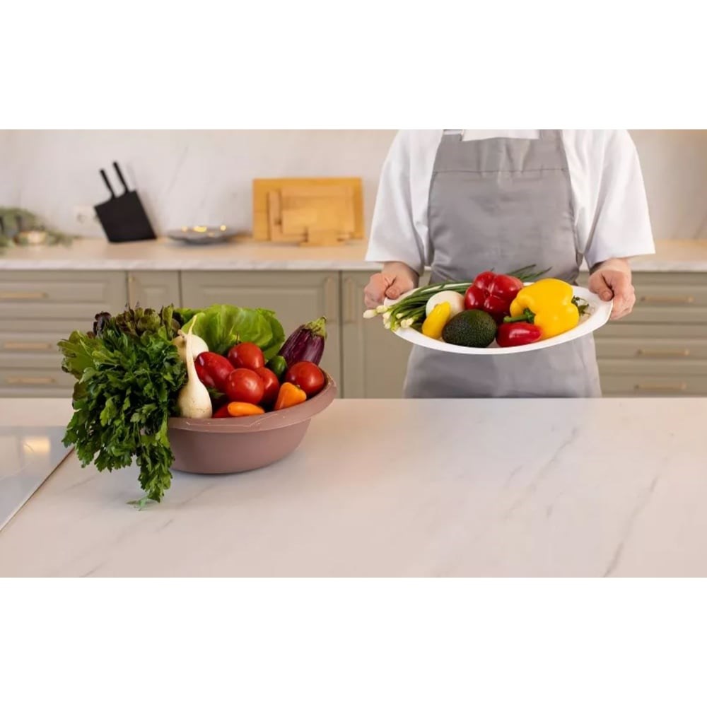 Миска выполнена из высококлассного полимерного сырья, не содержащего сторонних химических запахов и примесей. Такая посуда полностью безопасна для здоровья человека и не вступает в негативную реакцию с помещенной в нее едой. Пластиковая миска необычайно легка и прочна, за счет чего его всегда можно взять с собой в путешествие и на природу. Изделие просто мыть, как в горячей, так и в холодной воде. Возможно мытье в посудомоечной машине. Размер: 377х377х121 мм. Внимание! Модель поставляется в нескольких цветах. Возможности выбора нет.