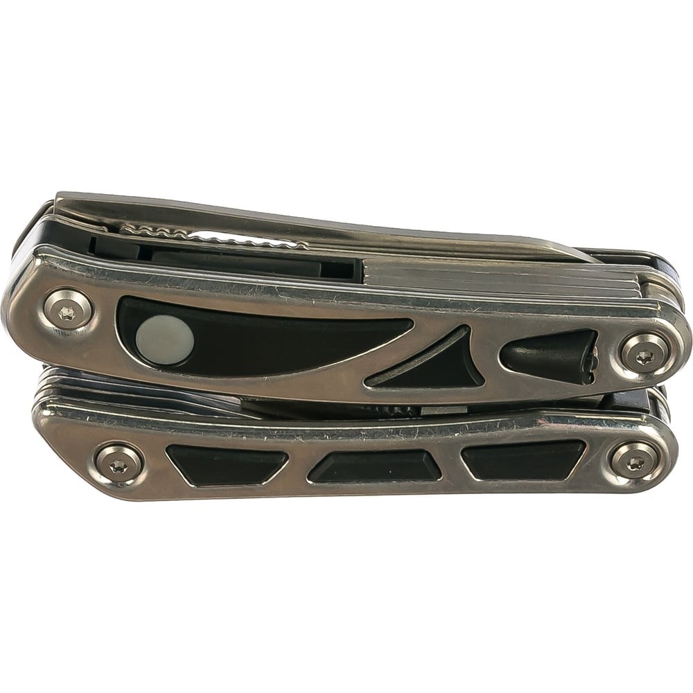 Функцииплоскогубцы, кусачки, захват для гаек и цилиндров, нож, 2 фонаря, отвертка PH, отвертка SL (средняя), открывалка для консервных банок, открывалка для бутылок, ножницы