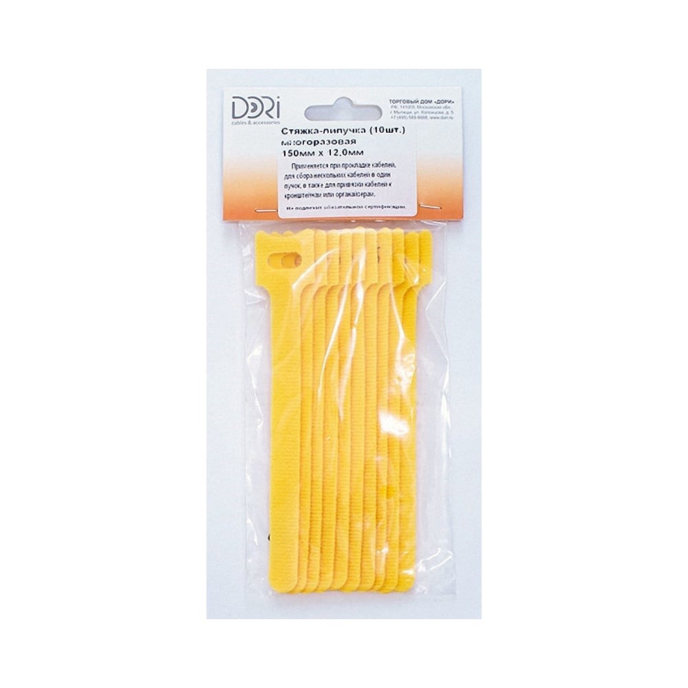 Многоразовая стяжка-липучка DORI 150x12 мм желтая 10 шт 42204